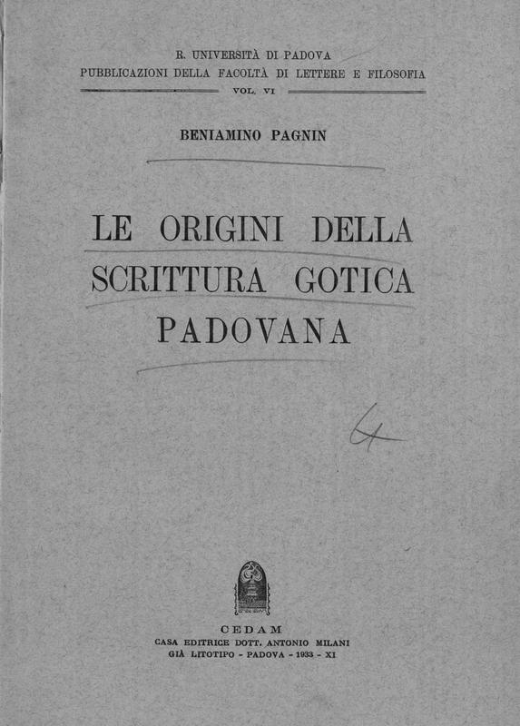 Le origini della scrittura gotica padovana . Beniamino Pagnin