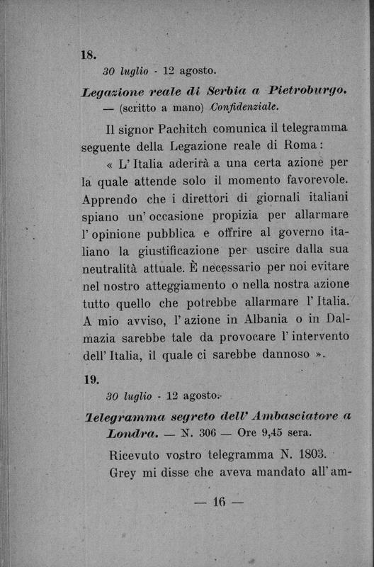 L'intervento dell'Italia nei documenti segreti dell'intesa