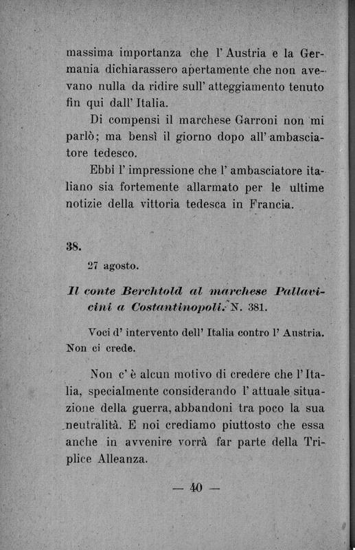 L'intervento dell'Italia nei documenti segreti dell'intesa