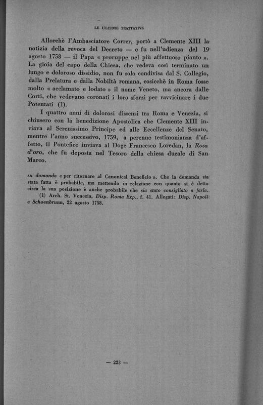 Benedetto XIV e la Repubblica di Venezia . Storia delle trattative diplomatiche per la difesa dei diritti giurisdizionale ecclesiastici