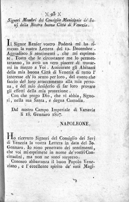 Collezione di carte pubbliche uffiziali e governative dal momento della entrata in Venezia dell'Armata Francese. Tomo decimonono