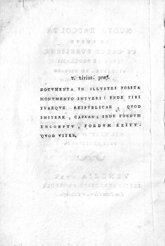 Nuova raccolta di tutte le carte pubbliche, leggi, e proclami stampate, ed esposte ne' luoghi piu' frequentati di Venezia e suoi dipartimenti dopo il felice ingresso dell'armi austriache di S.M. Imperatore, e Re nel Veneto Stato. Volume secondo